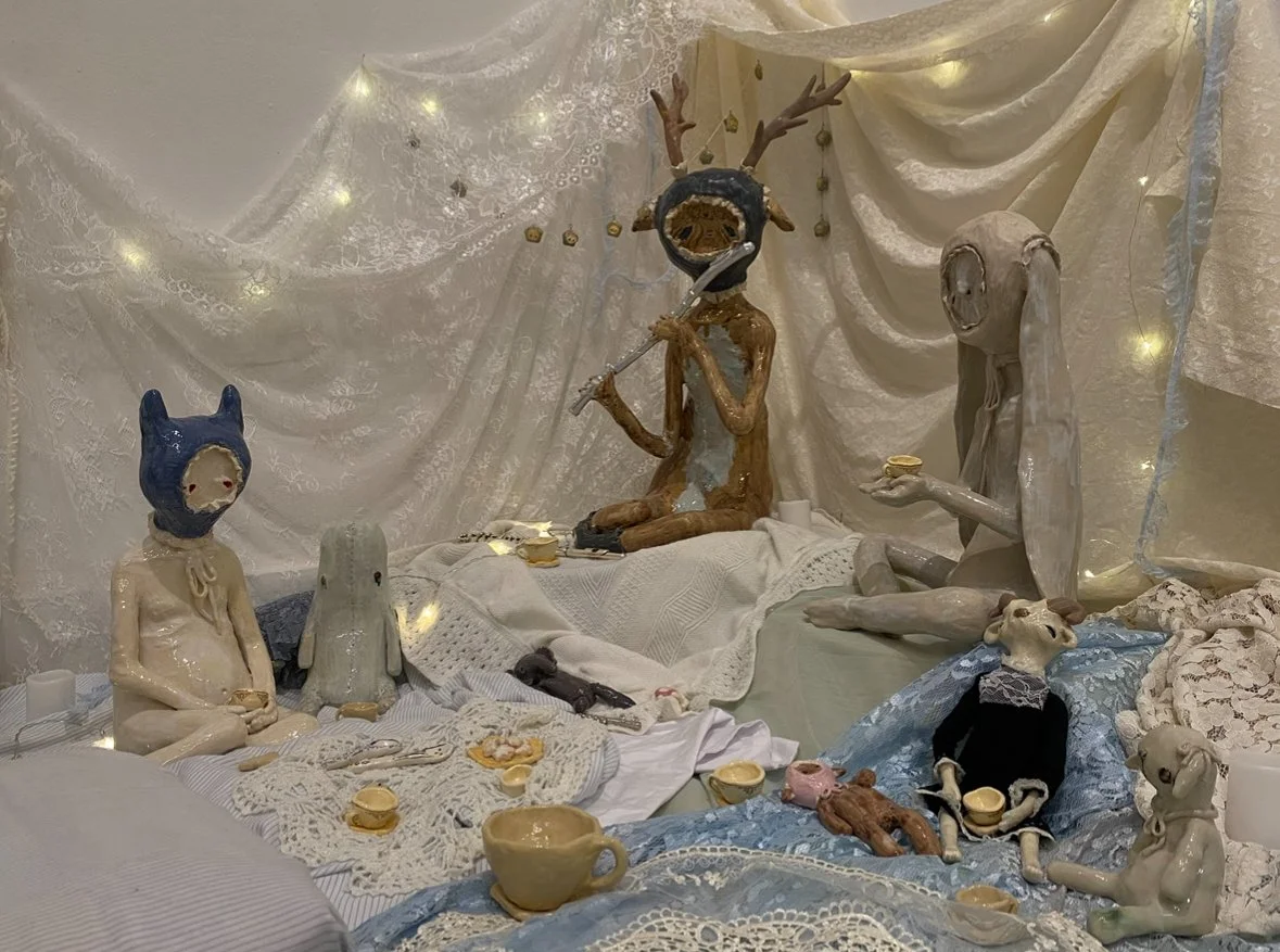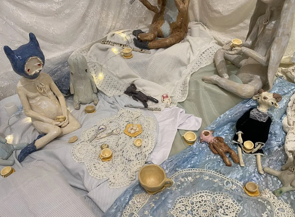 Ceramic, Glaze, Acrylic Paint, Fabric